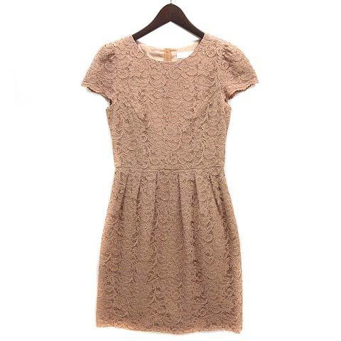 【中古】ストロベリーフィールズ STRAWBERRY-FIELDS 総レース ドレス ワンピース 膝丈 フレンチスリーブ アプリコットベージュ