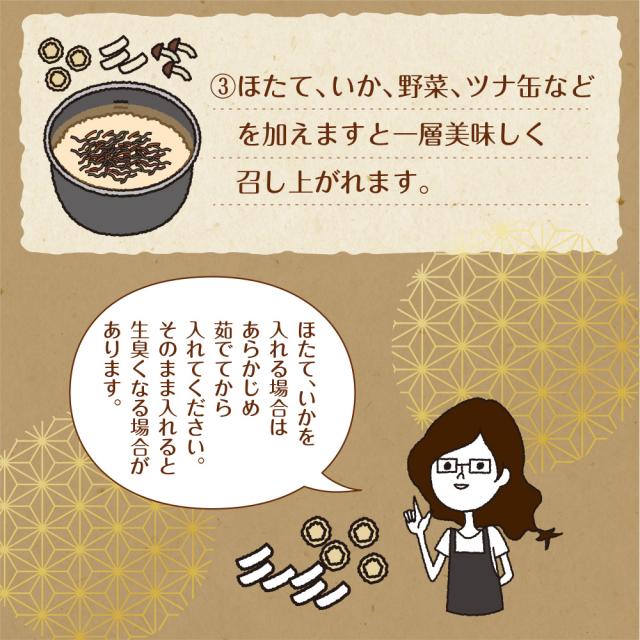 [具材]醤油(国内製造)、人参、砂糖、発酵調味液、昆布、するめいか、酵母エキス、(一部に小麦・いか・大豆を含む)