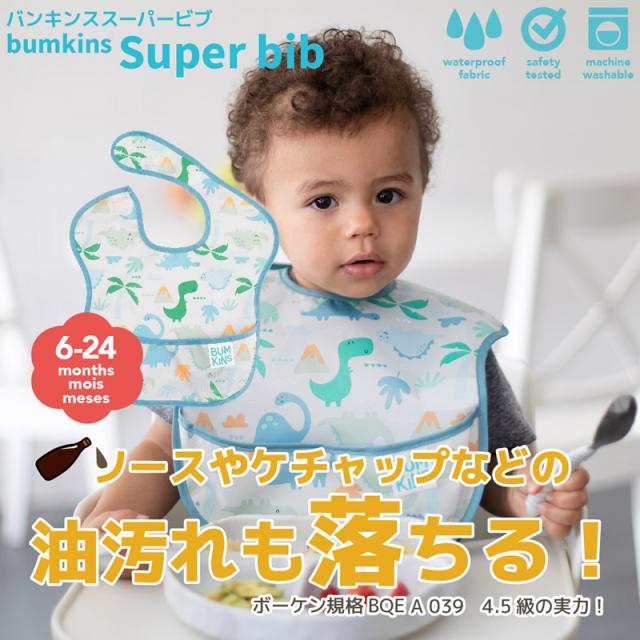 バンキンス スーパービブ (6ヶ月〜2歳) (メール便送料無料) 赤ちゃん エプロン ビブ 食べこぼし 防水 速乾 洗濯機 乾燥機 お食事 通園 園児 ベビー 可愛い BUMKINS