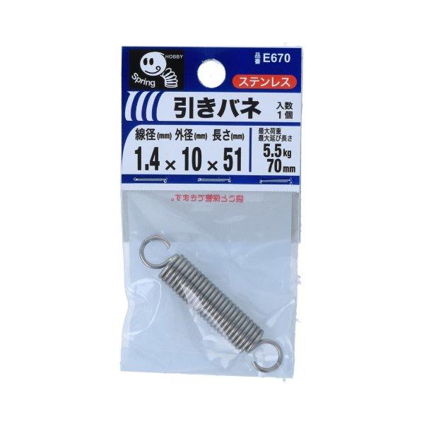 | 品名 | 引きバネ 1.4×10×51mm 1個入 E670 |