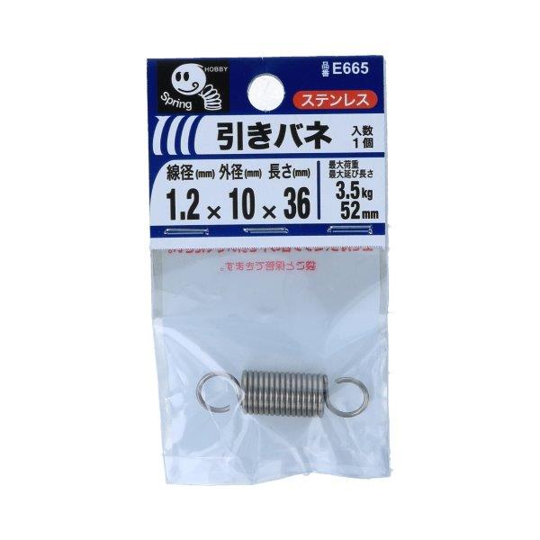| 品名 | 引きバネ 1.2×10×36mm 1個入 E665 |