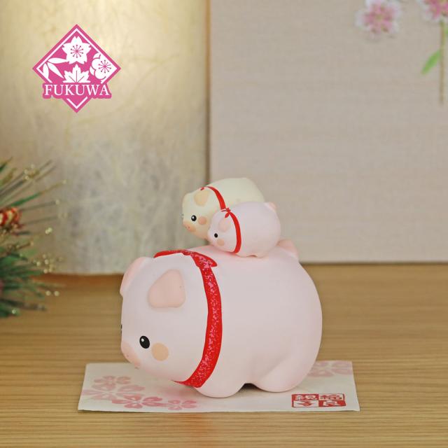 ぶた 置物 ブタ 雑貨 (福良(ふっくら)親子2匹乗せ ブタ R19-390B-500) 陶器 インテリア コンパクト 小型 日本土産 プレゼント 贈り物