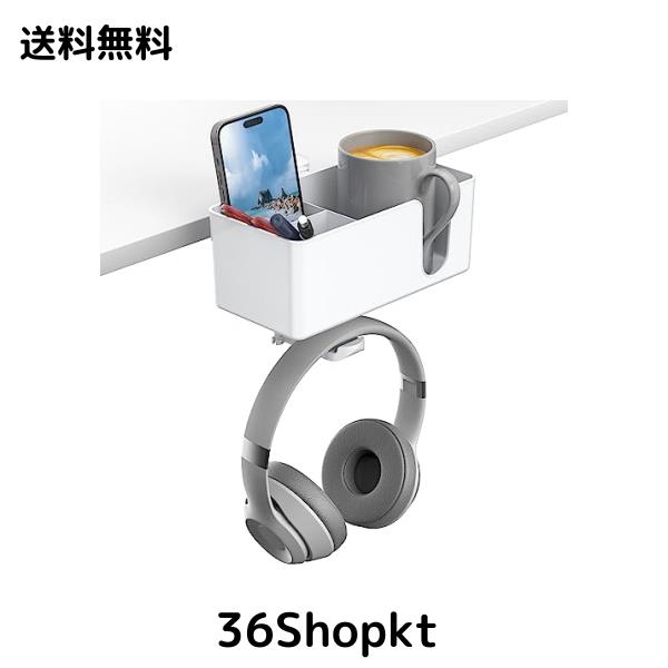 ◆商品名:KDD 4 in 1 デスクオーガナイザー—2つワイヤホール付きのデスク下ヘッドホンフック—回転可能なヘッドフォンハンガーとスマートフォン、カ