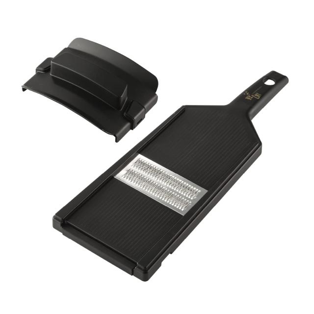 名刀の極み 関孫六 調理器シリーズ 切れ味良く、押し引き両方スピーディーに千切りができる特殊クランク刃を採用した千切り器! 先を直置きして調理するときに滑りにくいように滑り止め付き! ボウルの上で調理するときに安定する切り欠き付き! 調理時と収納時に安全なガード付きなのでケガの心配なし! 千切り幅は刺身のツマに最適な約1mm ! ! ご注意キャベツの千切りはできません。 サイズ:370×140×55mm 本体重量:330g 素材・材質:本体・安全ガード/ABS(アクリロニトリル・タジエン・スチレン)樹脂(耐熱温度80度)、刃部/18-8ステンレススチール、すべり止め/エラストマー樹脂(耐熱温度120度)