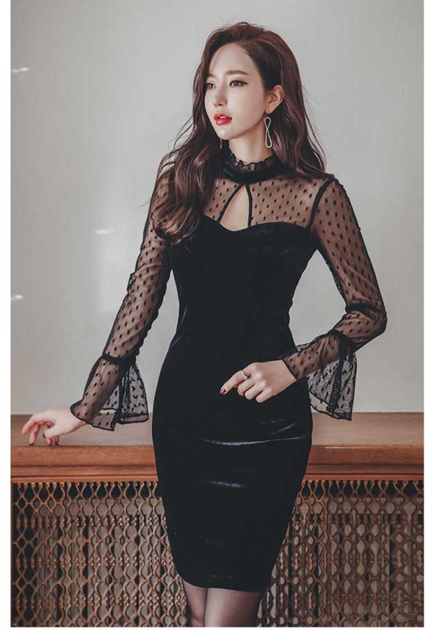 送料無料「沖縄 離島の方は除外です」チャイナドレス「ベロア素材袖レース長袖装飾切り替えミニ チャイナドレス」 和柄、よさこい、おいらん、 キャバ 花魁 コスプレ 勝負服