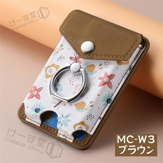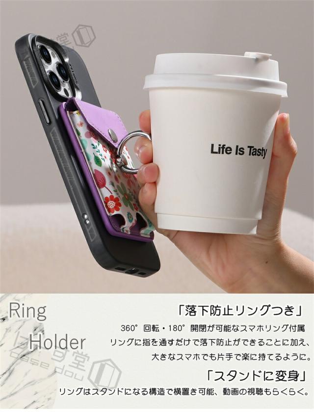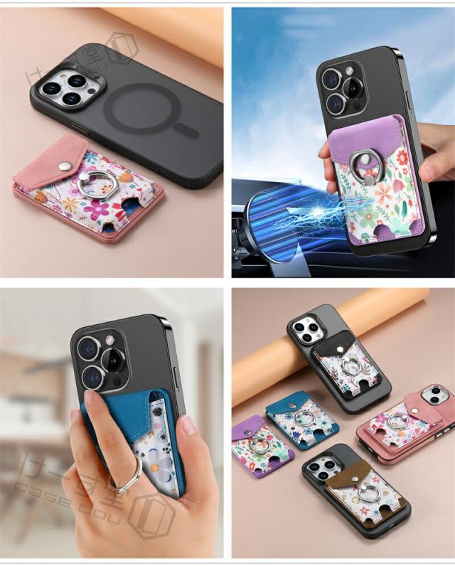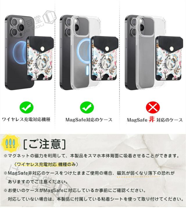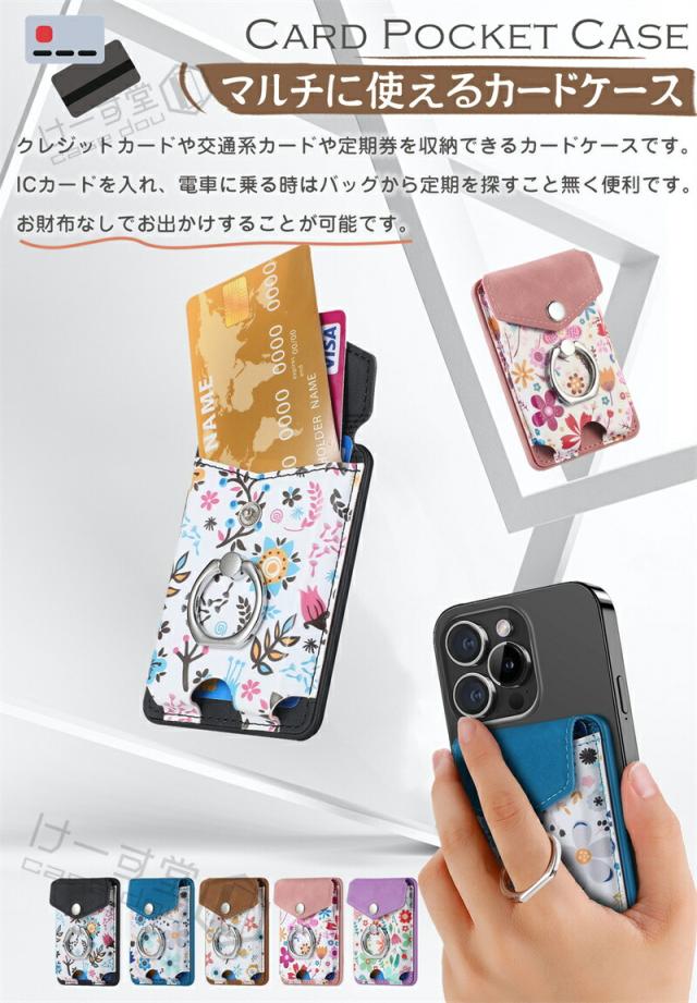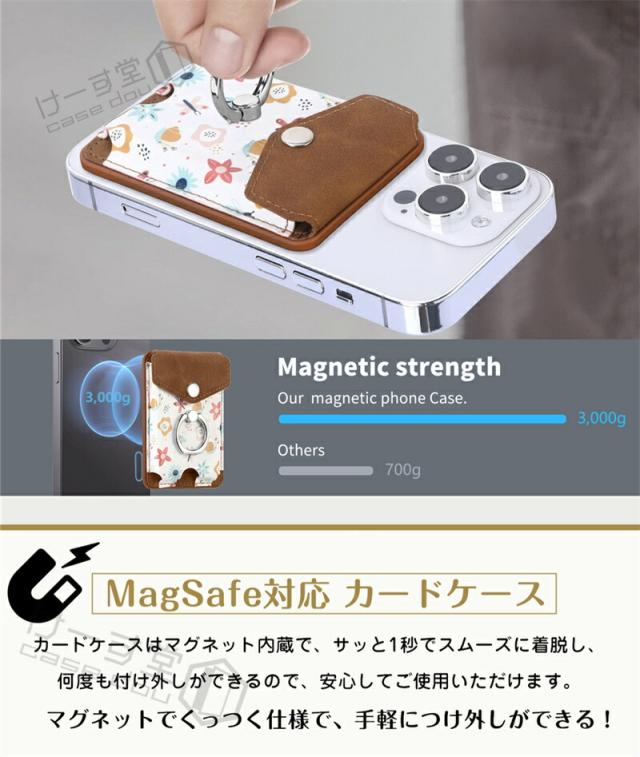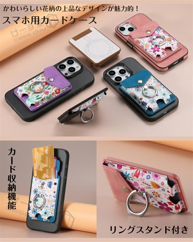 MagSafeウォレット MagSafeカードケース 花柄 汎用型 スマホカードケース リング スマホ落下防止 スマホリング 電磁波防止シート内蔵 MagSafe対応カードポケット MagSafe対応アクセサリー くるっと装着 着脱簡単 スマートカードケース スタンド対応 ワイヤレス充電対応 女子