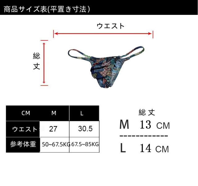 Mサイズ ウエスト平置き:横27CM 総丈13CM