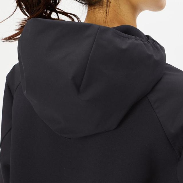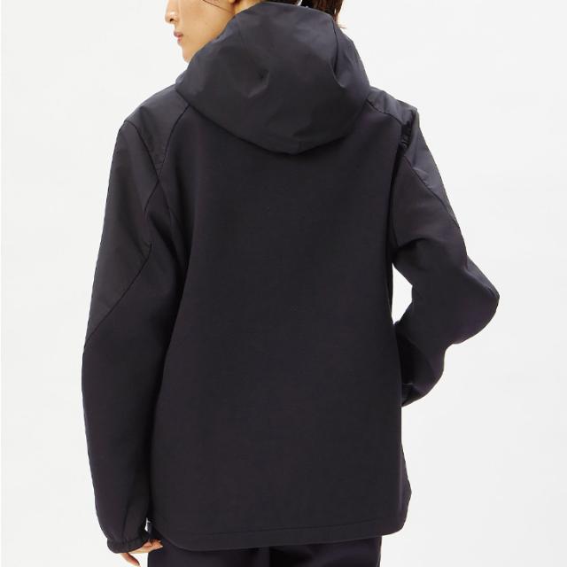 パフォーマンスを向上させます。フードから袖にかけてDWR(耐久撥水加工)を施した