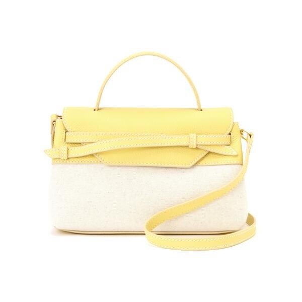MサイズはコンパクトでありながらON・OFFスタイルの コーディネートに抜け感を与えてくれます。クラシカルなシルエットにクロスリボンデザインがニュアンスのある表情をプラスします。取り外し可能なストラップ付きでクロスボディとしても使用できます。『MIMI − M FABRIC』は夏らしい キャンバス素材とレザーのコンビネーションで、ステッチカラーも白系色を使用して明るさを演出しています。