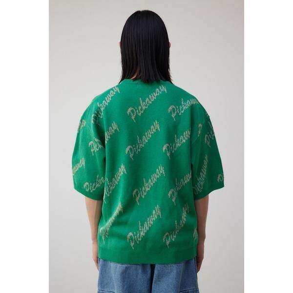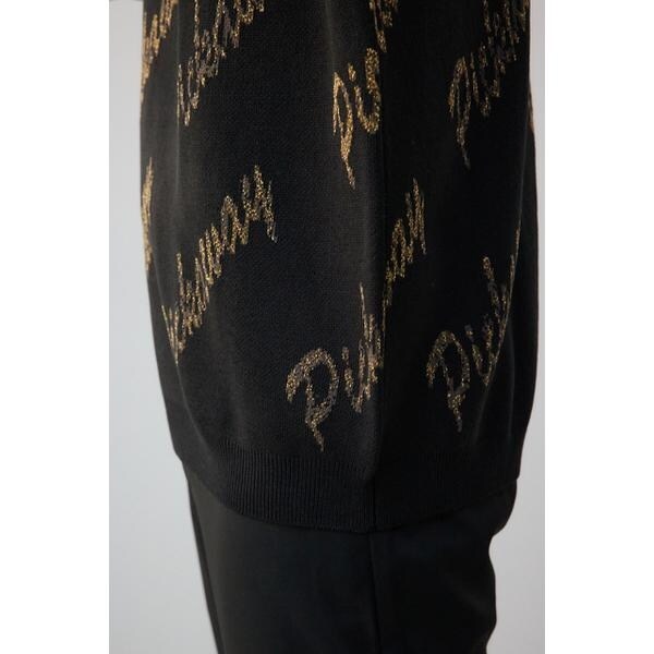 ゴールド総柄半袖ニットトップス