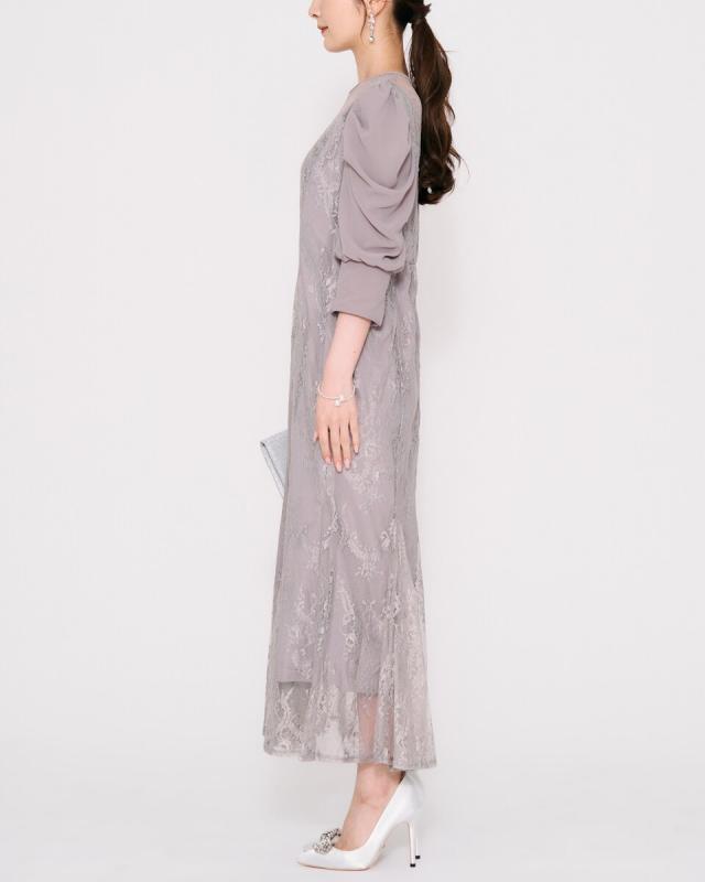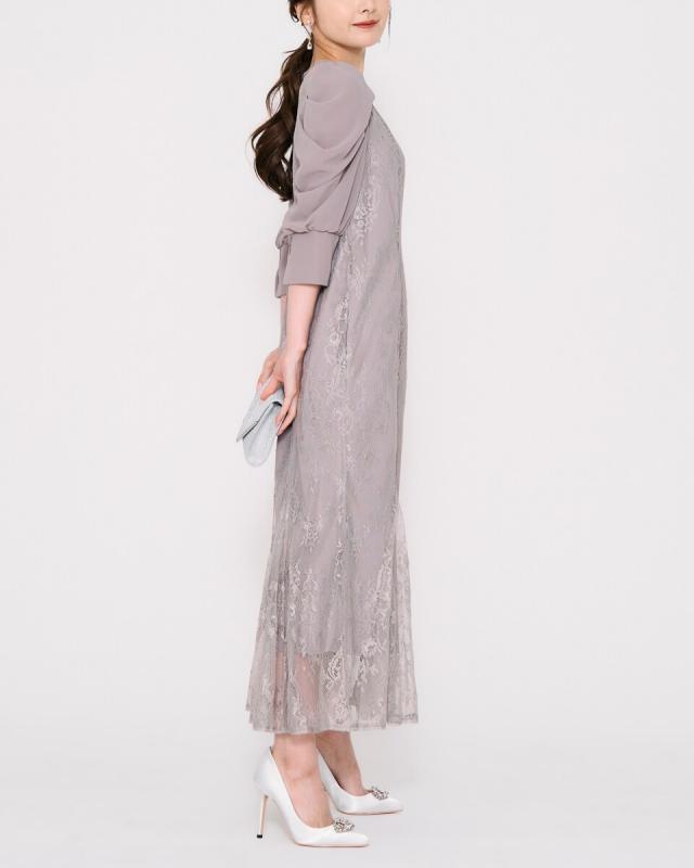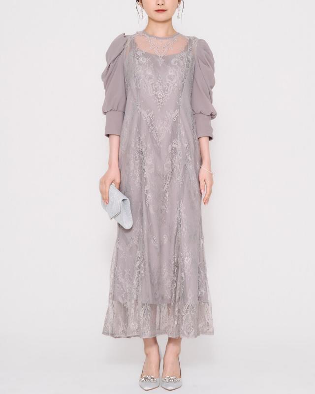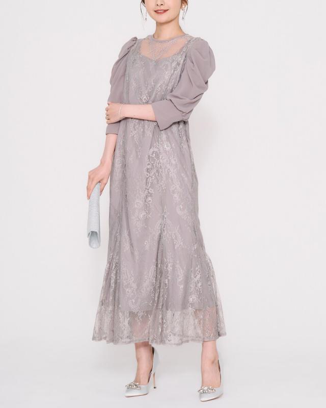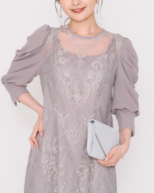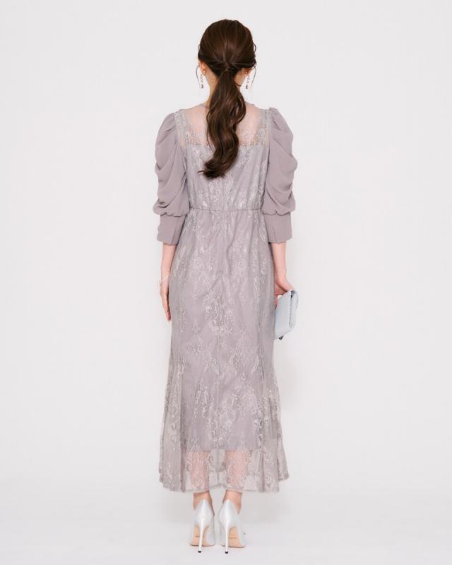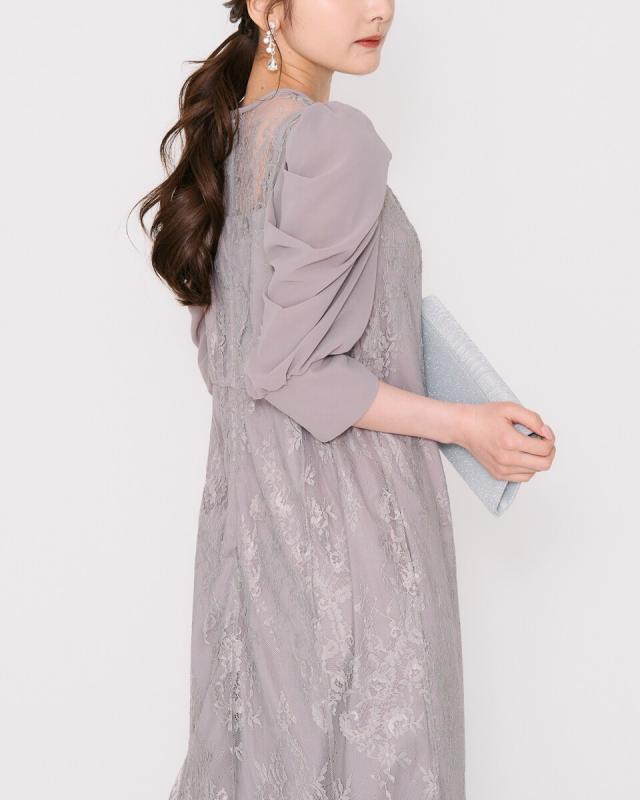デコルテ周りは透け感のあるレースで軽さを表現。