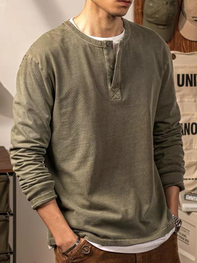 ヘンリーネック クルーネック メンズ ロングTシャツ 無地 Tシャツ 長袖 カットソー 100%綿 大人 シンプル ブランド 細身 タイト ブラック ホワイト 黒 白 春 秋 冬 M L XL
