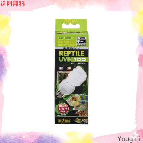 熱帯・亜熱帯に棲息する爬虫類にとって最適なUVBを照射するランプ。 爬虫類には紫外線の照射が必要です。 多くの爬虫類は自然界で太陽光に照らされて生活しています。太陽光には紫外線(UV)が含まれており、紫外線を浴びることで新陳代謝が行え、生命活動を維持できます。 飼育下で不足がちな紫外線を人工のランプで補う必要があります。 ケージ内で自然に近い明るさを再現するために「ナチュラルライト」との併用をお薦めします。 照射効果を確実にするために、一年を目安に交換してください。 飼育できる爬虫類の一例:パンサーカメレオン、ウォータードラゴン、グリーンイグアナ、ヒルヤモリ、ホシガメ、ロシアリクガメ、ギリシャリクガメ、アカアシガメ、水棲ガメ全般など 口金:E26 消費電力:26W ※コンパクトトップ、ライトドームに取り付けてご使用ください。