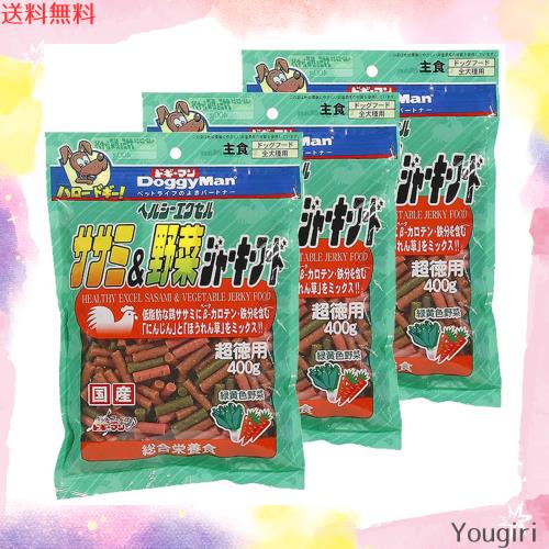 ドギーマン 犬用おやつ ヘルシージャーキー エクセルササミ&野菜ジャーキーフード チキン 400g×3個 (まとめ買い)