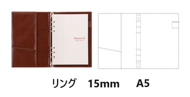 ちょっと大きめA5判… リング径15mm・厚さ24mmのシステム手帳です。