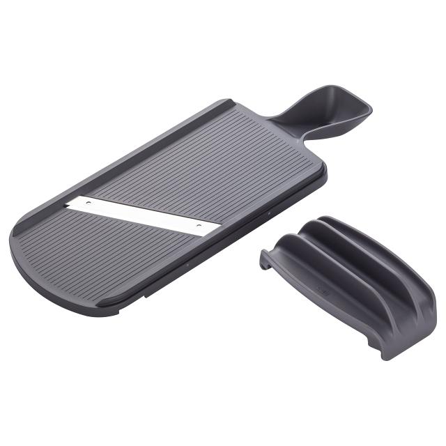 往復でスライスできる、コンパクトサイズの両刃スライサーです。 食材を約1.0mmの厚さで調理することができます。 サイズ:スライサー=240×94×2.1mm、指ガード=55×9.8×38mm 重量:スライサー=65g、指ガード=23g 素材・材質:刃部=ステンレス刃物鋼、本体=ABS樹脂(耐熱温度90℃)、指ガード=ポリプロピレン(耐熱温度90℃) 生産国:日本 食洗機:使用可能 セット内容:スライサー、指ガード