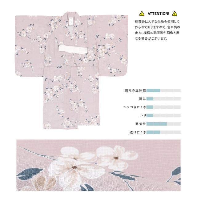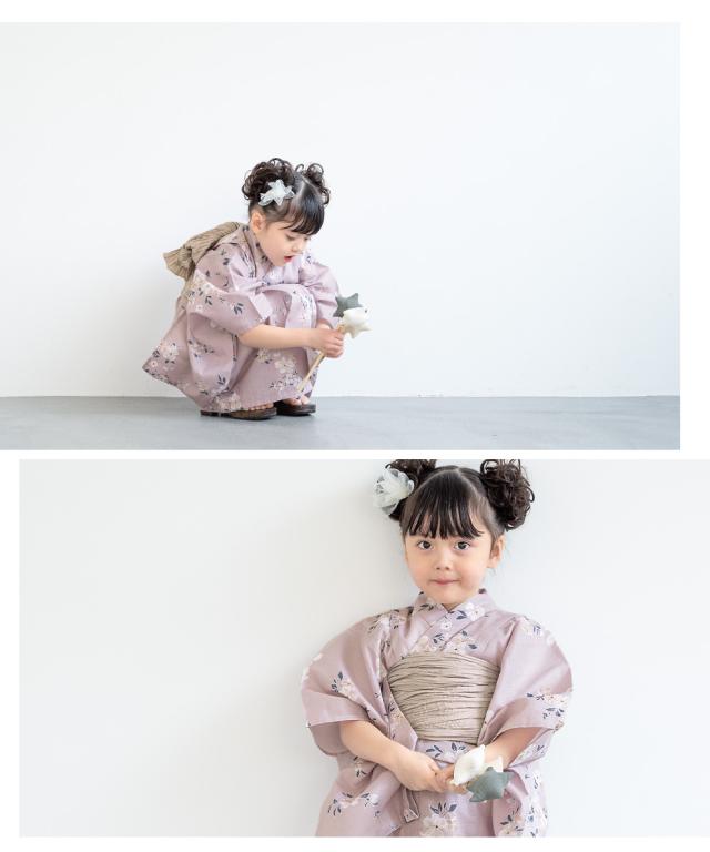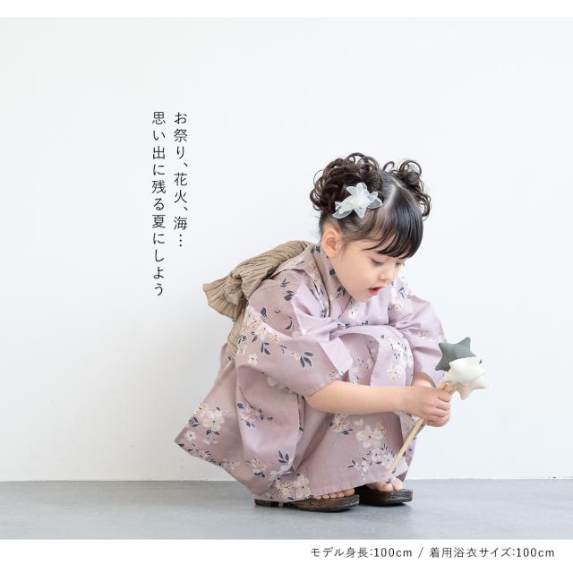 浴衣 子供 女の子 セット 2点セット キッズ 2026 女児 ライトパープル系 薄紫 桜 白茶 綿 夏 100cm 110cm 120cm 130cm 送料無料