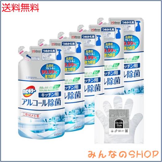 ◆商品名:カビキラー アルコールスプレー キッチン用 詰め替え用 350ml×5個 お掃除用手袋つき 日本製 アルコール除菌 除菌スプレー 除菌剤 エタ