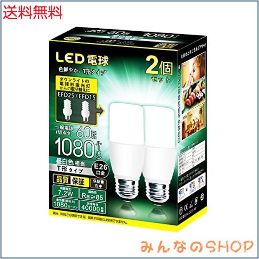 LED電球 T形タイプ 口金直径26mm 60w 100w形相当 昼白色 1080ルーメン (7.2W) 一般電球・T形タイプ 密閉器具対応