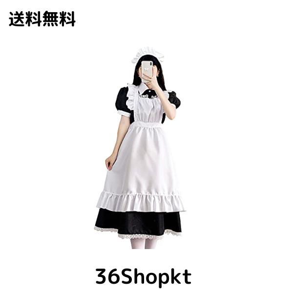 [XLサイズ] メイド服 男女兼用 大きいサイズ ドレス コスプレ衣装 メイドカフェー コスチューム 仮装 学園祭 パーティグッズ 半袖 ロング