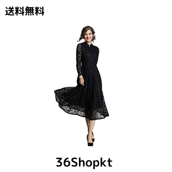 (イノ) 五色展開 ワンピース ドレス 結婚式 パーティードレス 総レース マキシワンピース 秋冬 春 レースワンピース ロングドレス 長袖