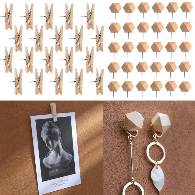 20個の木製クリップ 30個の 画鋲、収納ケース付き 木 画びょうピン 固定用 コルク ボード 掲示板用 ポスター 写真 地図 カレンダー固定に