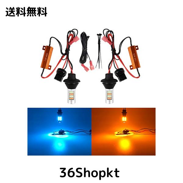 『商品仕様』口金タイプ:T20 シングル 7440 W21W WY21W ピンチ部違い / 発光色:アンバー&アイスブルー / LEDチップ:2835SMD / LEDチップ数:42連 / 入力電圧:DC12V / 消費電力:(ポジション)0.228A×12V=2.736W、(ウインカー)2.14A×12V=25.68W / 極性:無極性 /保証:100日保証。