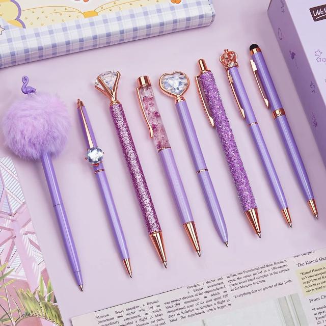 WEMATE 油性ボールペン8本セット0.5mmブルー&黒インクキラキラ可愛いペン‐ 金属ダイヤモンドペン女性へのギフト 学生、結婚式、オフィス
