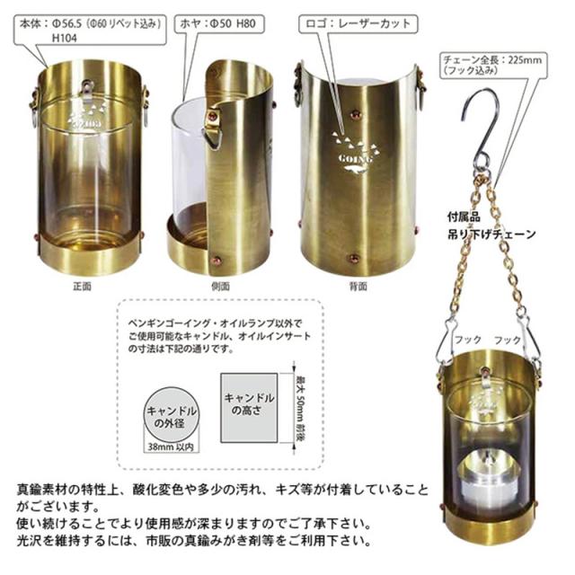 キャンドルランタン オイルランプ セット ペンギンゴーイング ホヤ付き キャンプ 真鍮 ランタン 風に強い ガラス筒 屋外 アウトドア