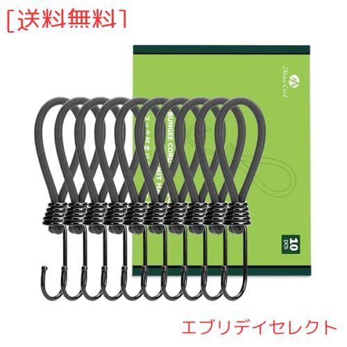 ◆商品名:Abma Cord ストレッチコード ゴムフック 全長15/18/20/23cm 10本組 ロープフック ループバンジー テント・タープ・張綱 フック付きバンジ