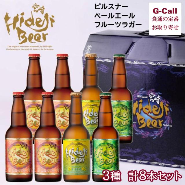 宮崎ひでじビール 8本ギフト 北海道・沖縄送料別 冷蔵 宮崎 クラフトビール 飲み比べ 3種 受賞 ラガー ピルスナー ペールエール 無濾過 生産者直送 お取り寄せ