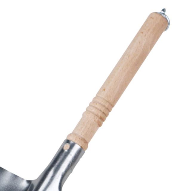 ハンドル部分には無垢のブナ材を使用していて、使い込むほど味わいが出てきます。握りやすいようすべり止めの溝が彫られており、シンプルなデザインながら機能性にもこだわったアイテムです。
