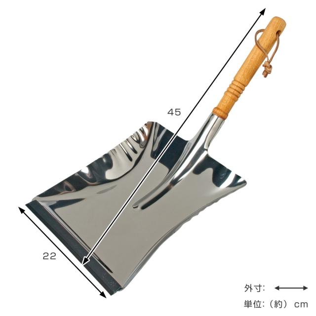 掃き入れ口には細かいゴミを集めるためのゴムが接着されており、床が傷つかないよう保護も兼ねています。ステンレス素材はサビに強く、ガーデニング用としても重宝します。