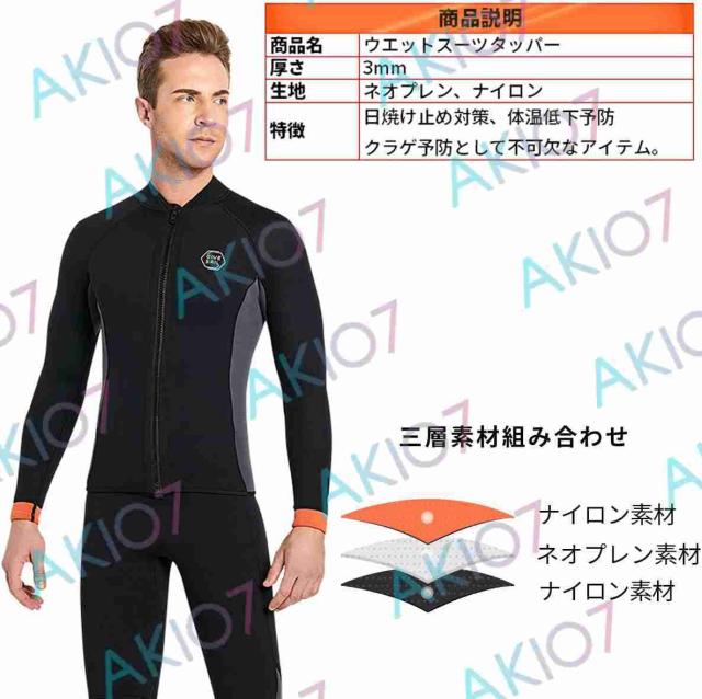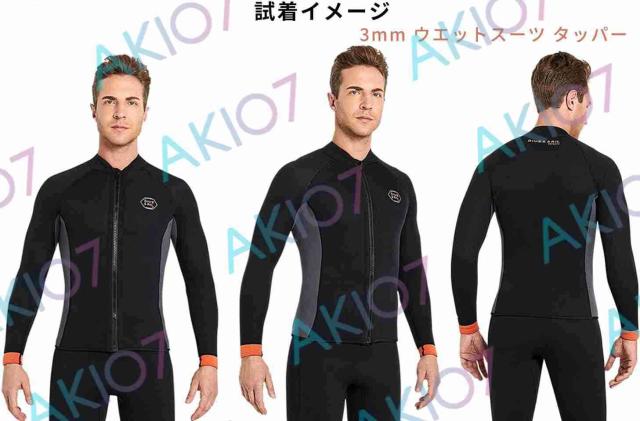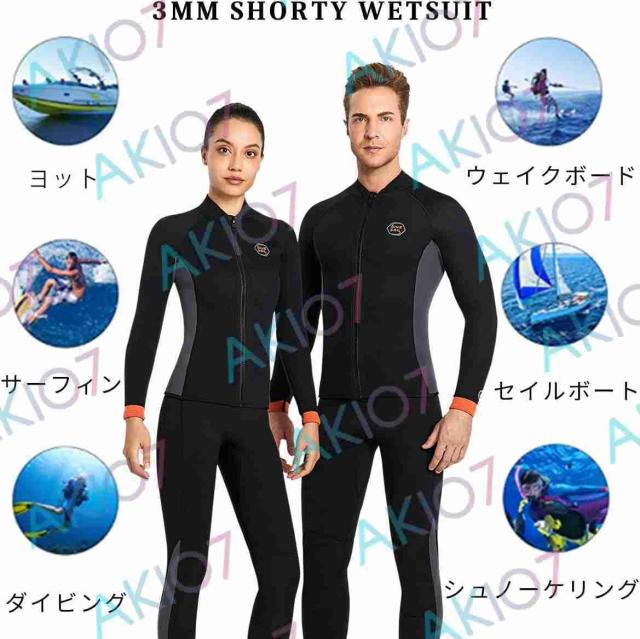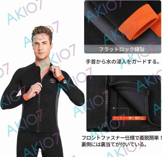 【メンズ上下セット】3mmネオプレン ウェットスーツ シュノーケリング ウェットジャケット フロントジップ 長袖 UVカット ケガ防止 サーフィン ダイビング マリンスポーツ