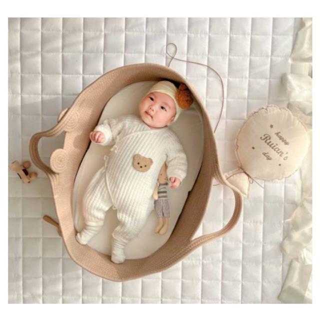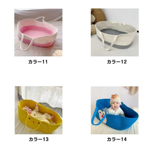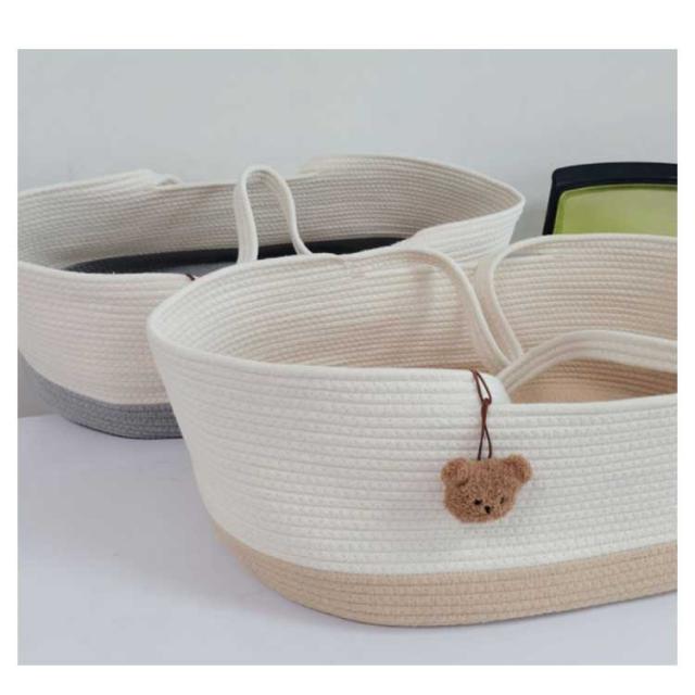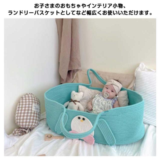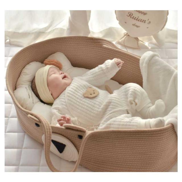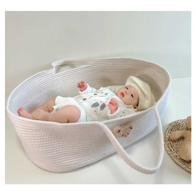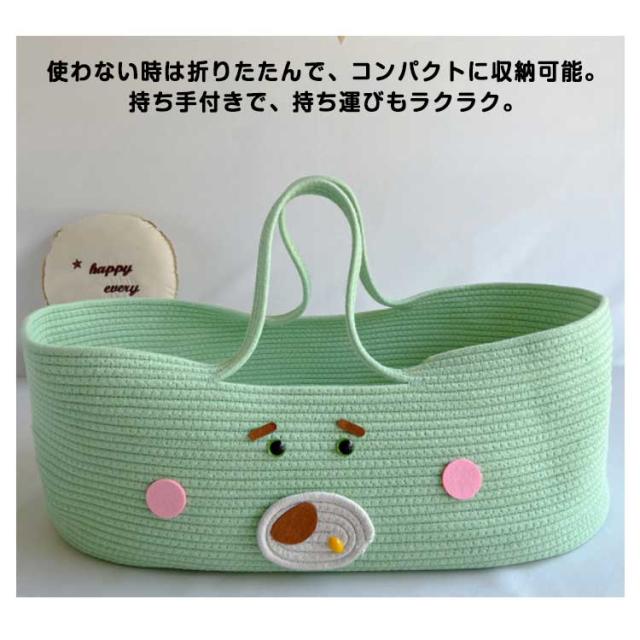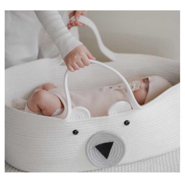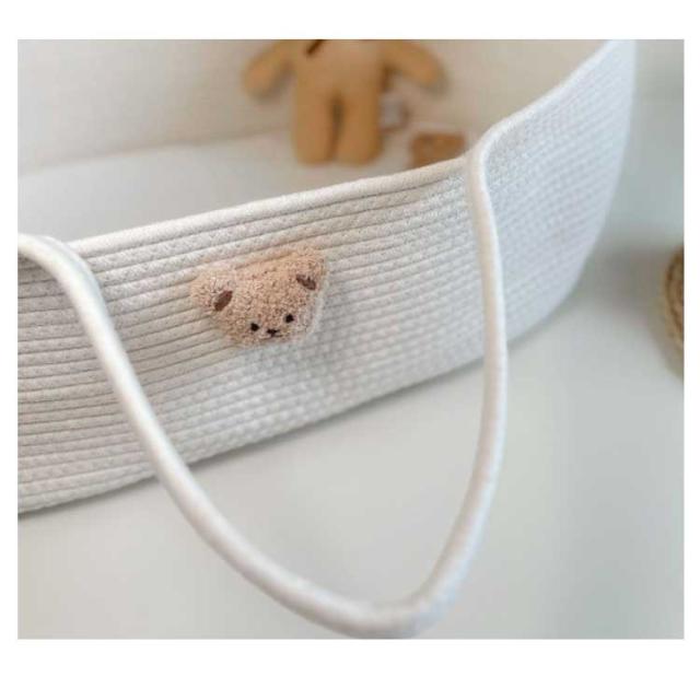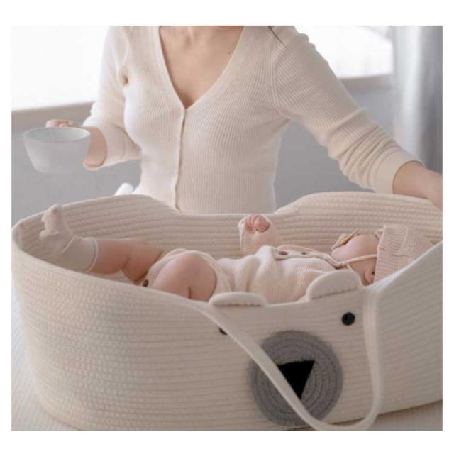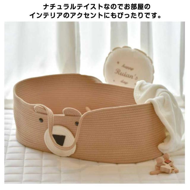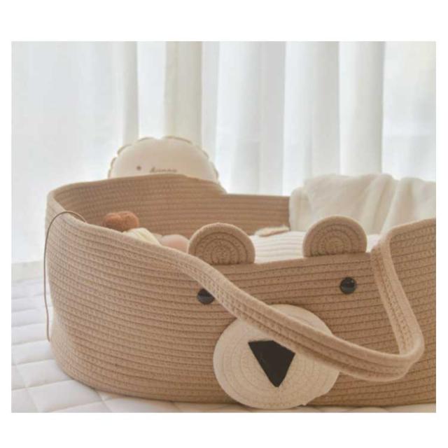 折りたたみ ベビーベッド ベビーキャリー ベビーバスケット かご クーファン ロープ編み クーファン 小物収納 赤ちゃん 移動用 クマ 外出 退院 ランドリーバスケット 綿 軽量 70×40×25cm