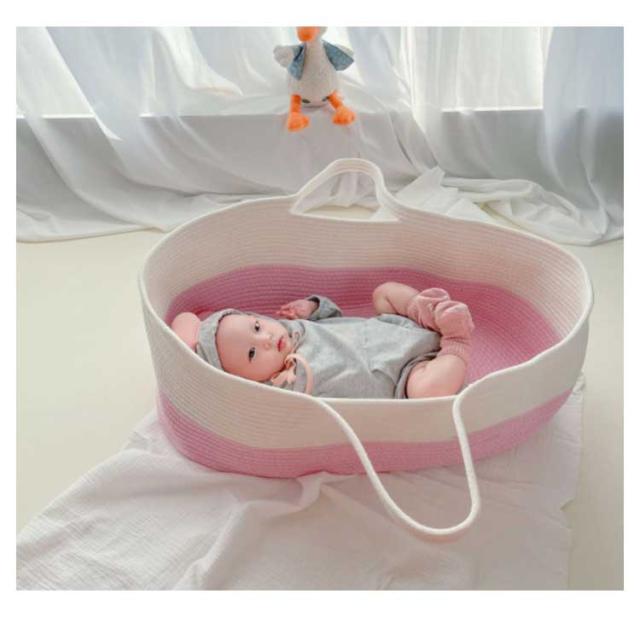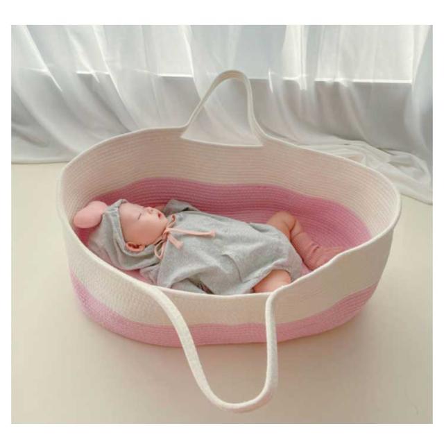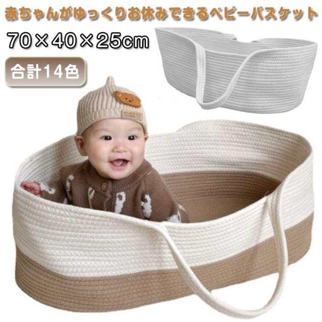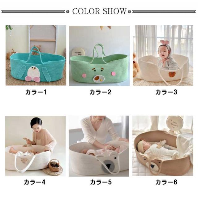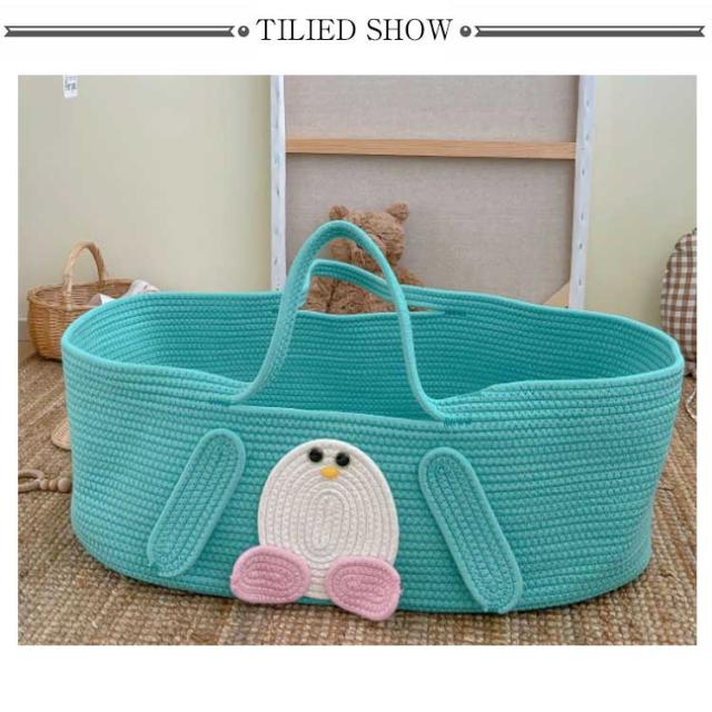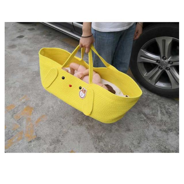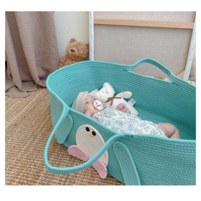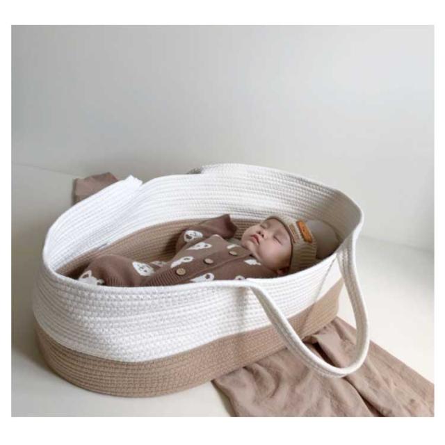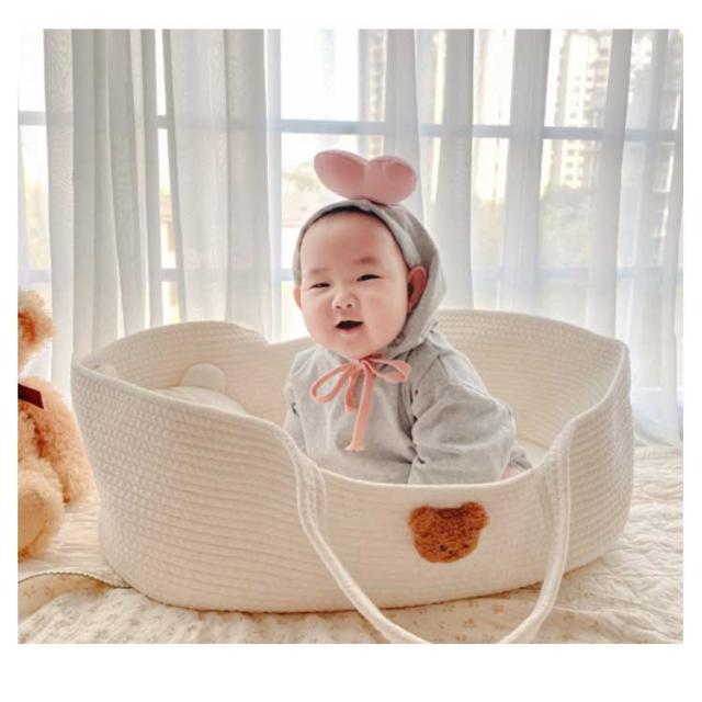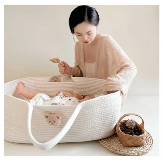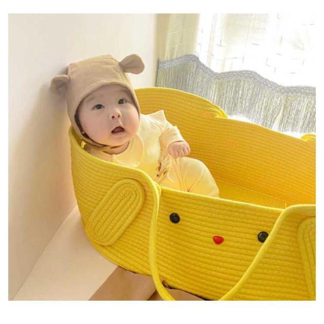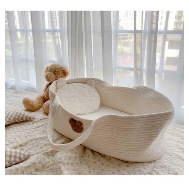 折りたたみ ベビーベッド ベビーキャリー ベビーバスケット かご クーファン ロープ編み クーファン 小物収納 赤ちゃん 移動用 クマ 外出 退院 ランドリーバスケット 綿 軽量 70×40×25cm