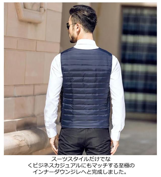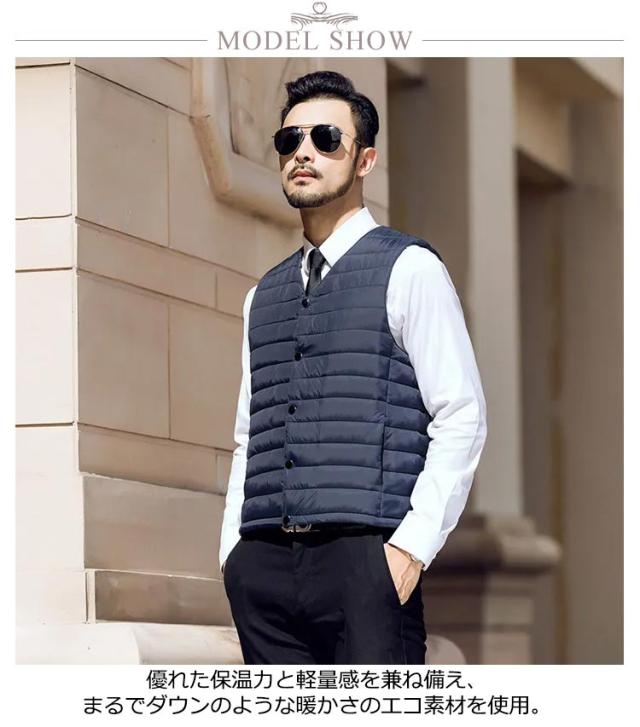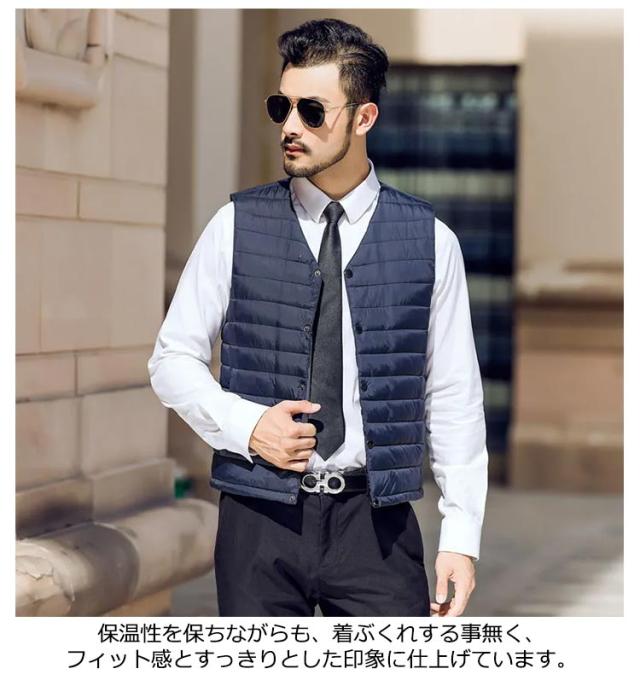 ジレ 軽量 インナーダウン ベスト エコダウンベスト ベスト インナー 軽い ダウンベスト メンズ ベスト Vネック ファイバーダウン L 防寒 ライトダウン 秋冬 暖かい ビジネス エコダウンベスト ダウンジャケット スリム 大きいサイズ スーツベスト 保温