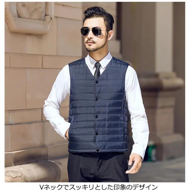 エコダウンベスト メンズ ジレ ベスト インナー インナーダウン L ダウンベスト ベスト ファイバーダウン 暖かい Vネック 軽量 軽い 防寒 ライトダウン 秋冬 ベスト ビジネス ダウンベスト ダウンジャケット スリム 大きいサイズ スーツベスト 保温