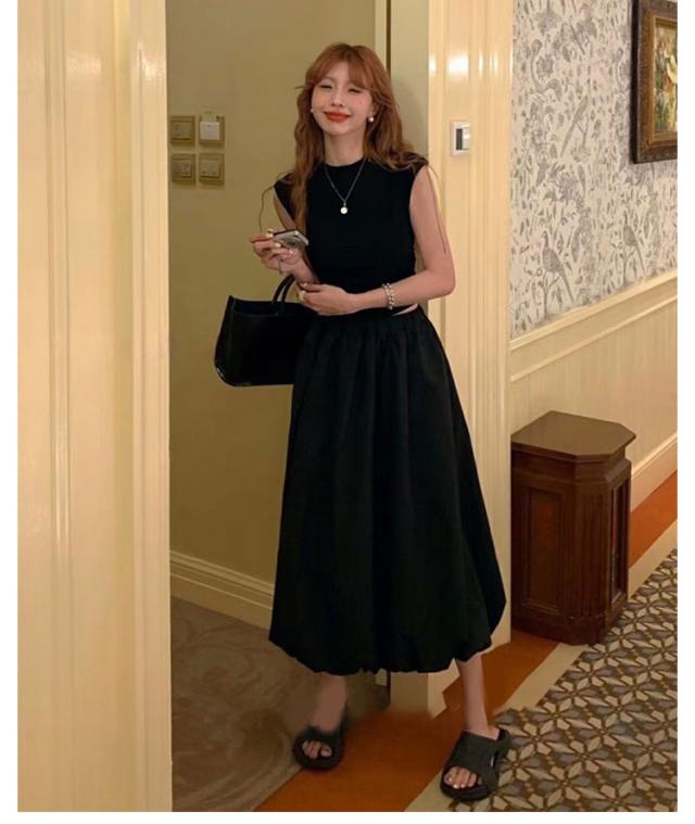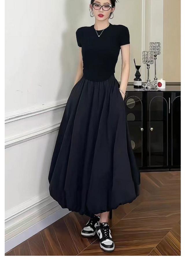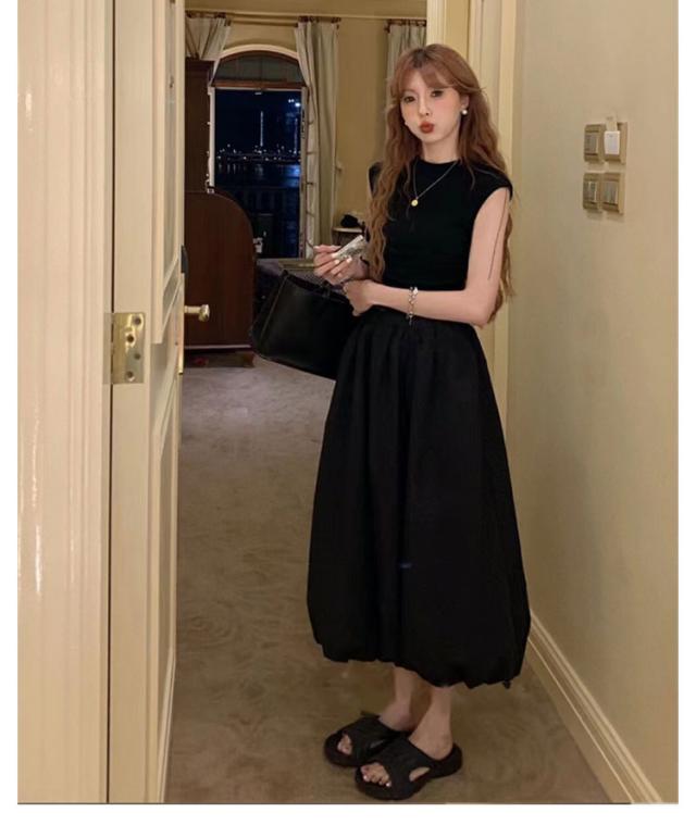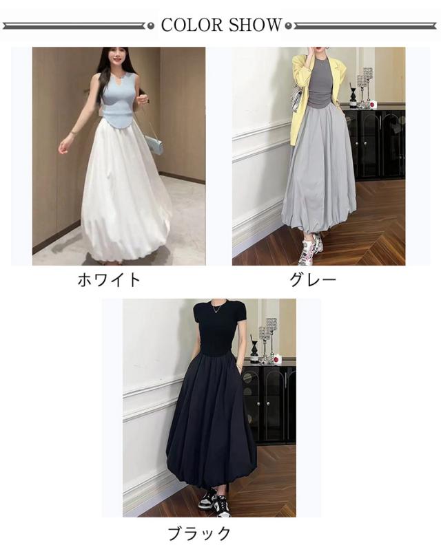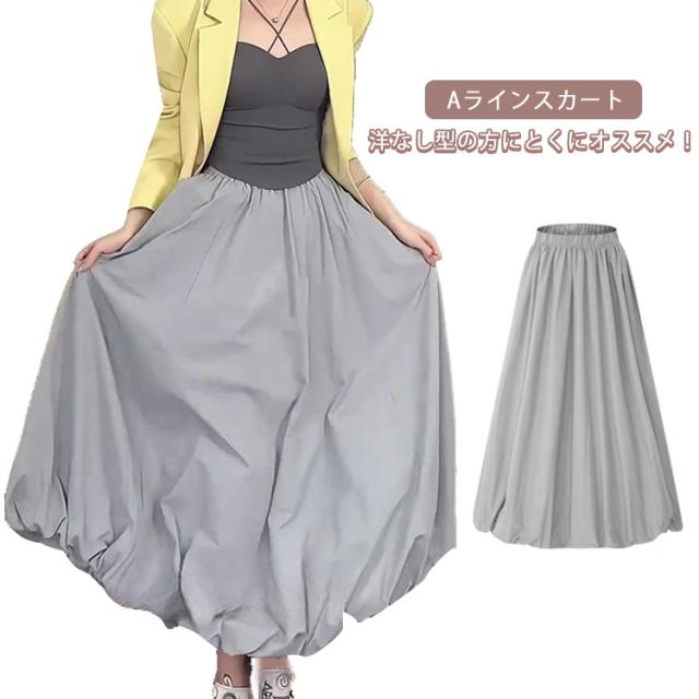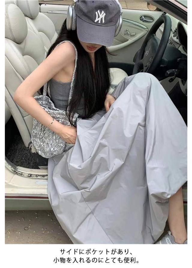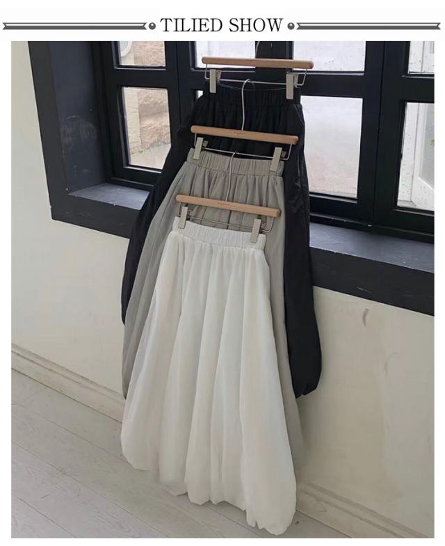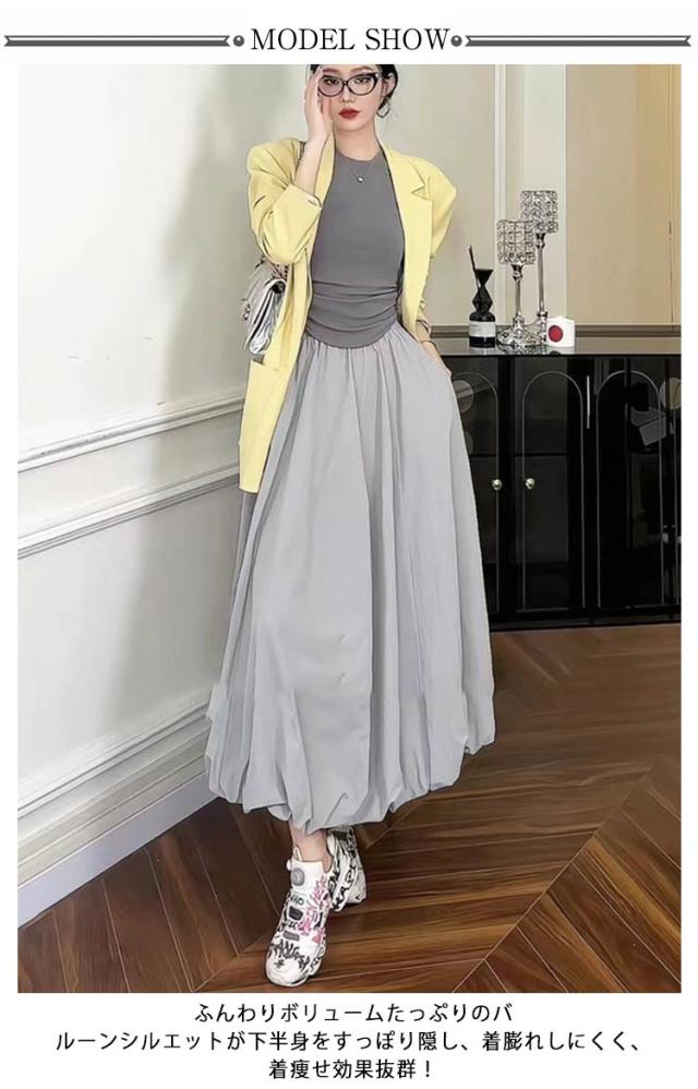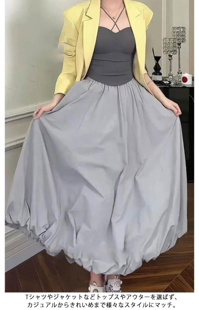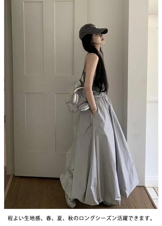 韓国ファッション マキシ丈 体型カバー バルーンスカート 裏地付き 春夏 Aラインスカート コクーンスカート ロングスカート ウェストゴム 可愛い フレアスカート ポケットあり 春夏 マキシスカート 送料無料 春新作 ウェストゴム