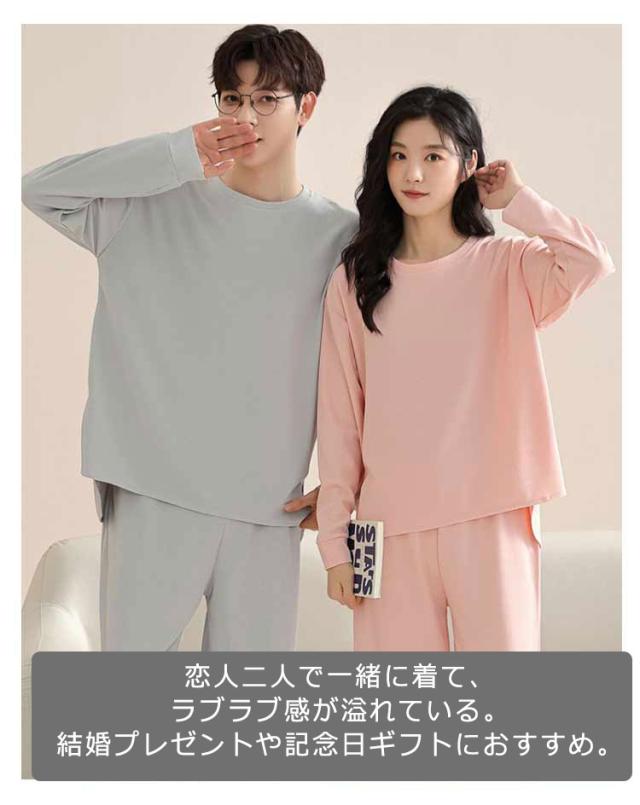 パジャマ ルームウェア ロングパンツ カップル 長袖 セットアップ トップス 春夏秋 ナイトウェア ペアルック 入院 お揃い メンズ パジャマ 部屋着 カットソー 長ズボン きれいめ 大人