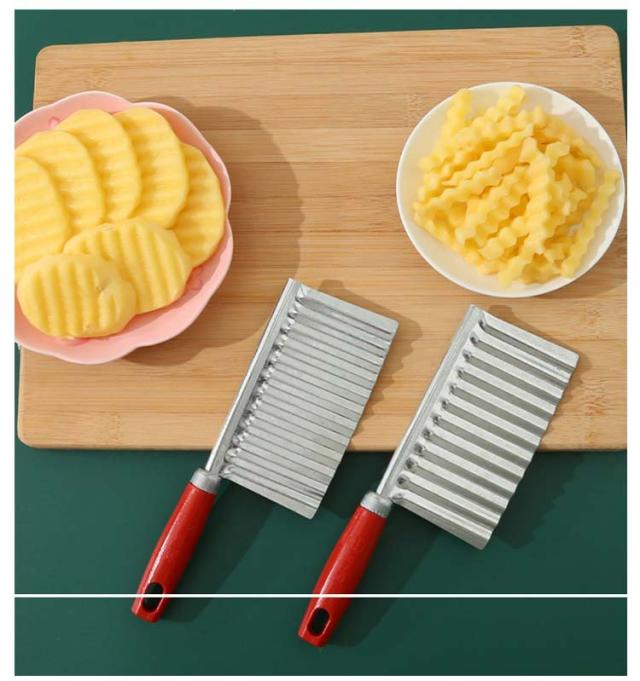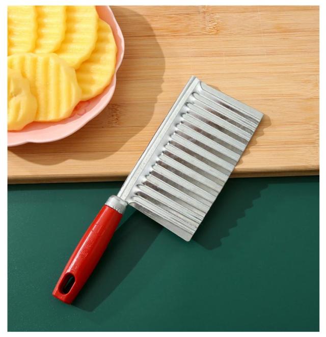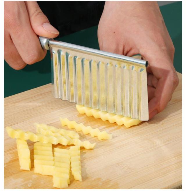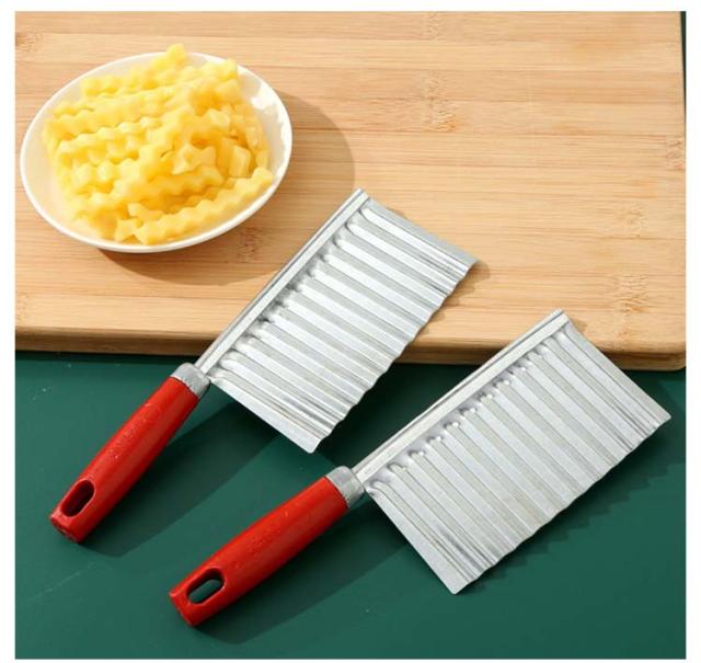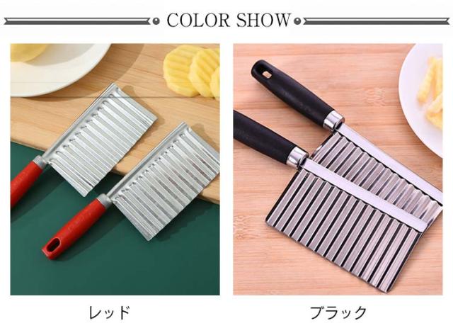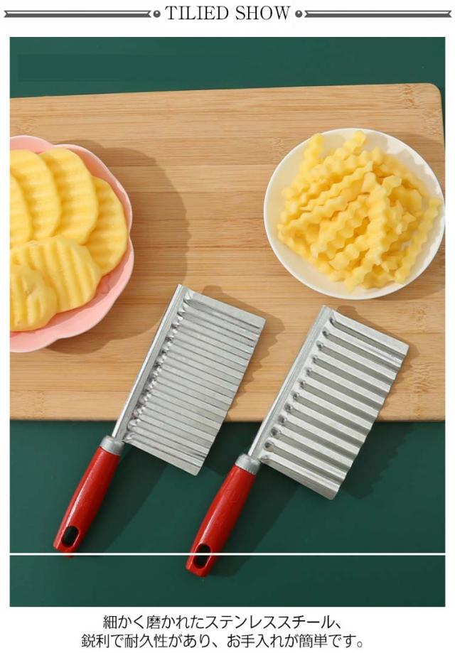 | 創造的な波状ポテトカッター 刃面が波状になっているのでジャガイモが切りやすくなっています。 細かく磨かれたステンレススチール、鋭利で耐久性があり、お手入れが簡単です。 | |