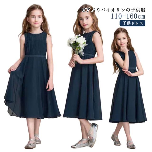 上品 子供 ピアノ発表会 ドレス ロングドレス フォーマル 七五三 中学生 黒 ミモレ丈 シンプル 子供ドレス ネイビー ブラック ワンピース 発表会 お姫様 ピアノ発表会 エレガント 女の子 入学式 卒業式 結婚式