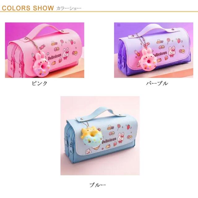 | 文房具がたっぷり収納できるかわいい大容量ペンケースが登場。 ぐるっと大きく開いて、いるものが見つけやすい。ダブルファスナーでペン、消しゴム、付箋、ハサミ、修正テープなど用途を分けて収納が可能です。 レザー調のフラップはマジックテープが付いているので、開閉しやすくなっており、持ち手が付いているのでペンケースの持ち運びに便利! ペンケース本体は良質のキャンバス生地で耐久性が高い、長くご愛用いただけます。 ストレス解消スクィーズを付き。可愛くてとっても便利なスグレモノ! ペンケースとしてはもちろん、いつも携帯するUSBメモリやスマートフォンの携帯充電器の機器類にも。多様に利用できて用途は広がります。 | |