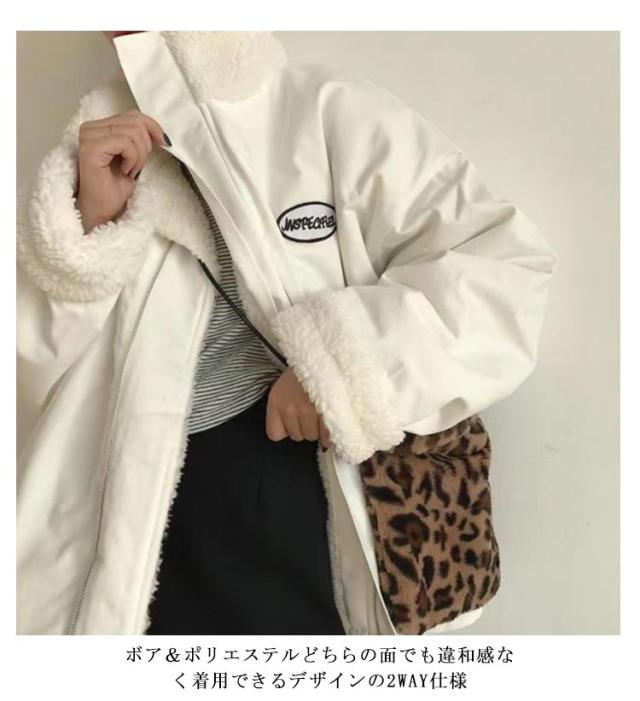 | シーズンスタイルをラフに羽織れる大人のリバーシブルブルゾンが登場! ボア&ポリエステルどちらの面でも違和感なく着用できるデザインの2WAY仕様 トレンド感のあるオーバーサイズなシルエットで大人の抜け感を演出。 首元をしっかりと覆うスタンドネック とても暖かみがあり、程よい厚みの生地を仕様している為、これからの時期にお使い頂けるアイテムです。 1着あるだけで様々なスタイルに対応できる、万能な1着となっています | |