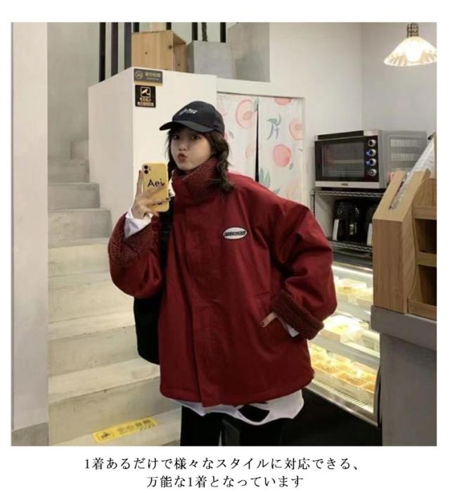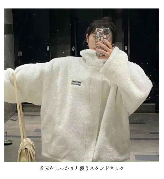 スタンドカラー 裏起毛 中綿ジャケット アウター レディース メンズ ボアジャケット 冬 厚手 中綿ブルゾン 秋 ワンポイント 通学 ジャケット 防寒 あたっか オーバーサイズ ゆったり 裏起毛 シンプル カジュアル 通勤 大きいサイズ