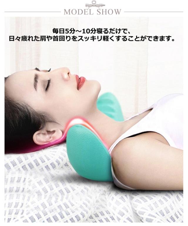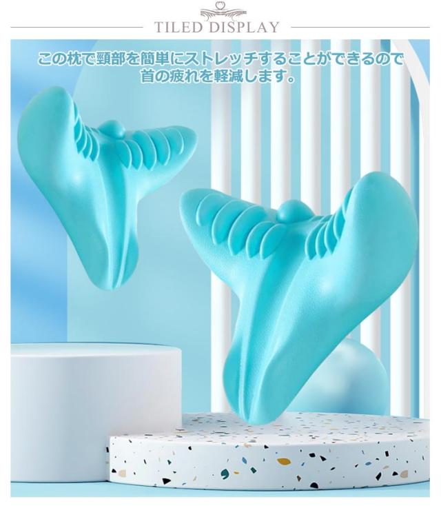 | 人間工学に基づき設計された枕です。 毎日5分〜10分寝るだけで、日々疲れた肩や首回りをスッキリ軽くすることができます。 長時間のデスクワークや、スマホの使用から頸部の問題を抱える人はとても多いです。 この枕で頸部を簡単にストレッチすることができるので首の疲れを軽減します。 | |