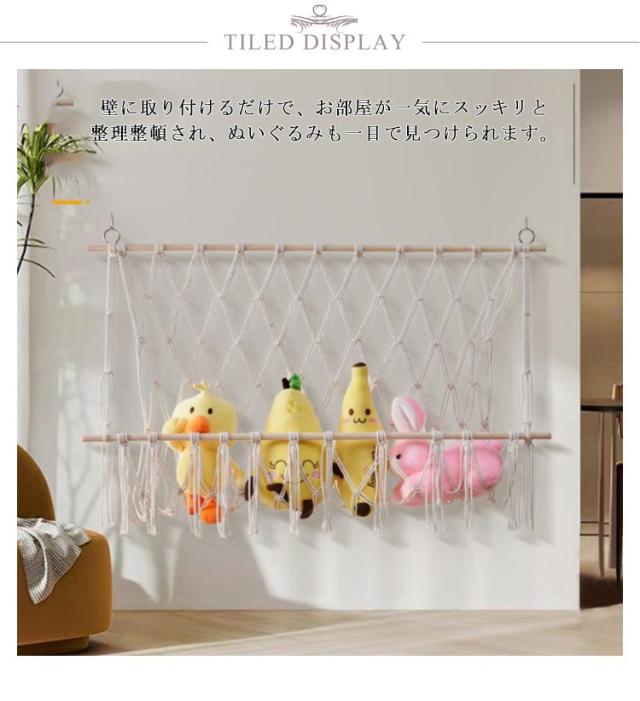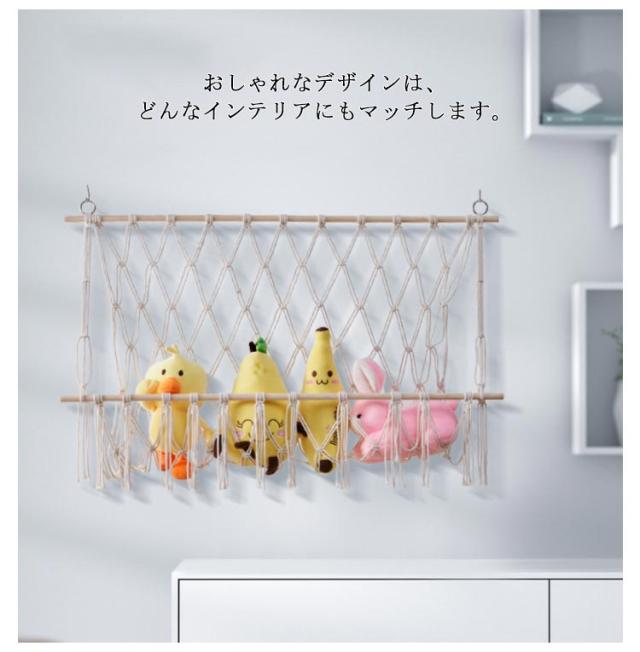 | 100*60cm 大量のぬいぐるみを一箇所にまとめて収納することができるハンモック。 壁に取り付けるだけで、お部屋が一気にスッキリと整理整頓され、ぬいぐるみも一目で見つけられます。 おしゃれなデザインは、どんなインテリアにもマッチします。 タッセルをつけると、よりインテリア感の強い、おしゃれな印象に。 子供部屋だけでなく、リビングや寝室など、さまざまな場所に設置できます。 | |