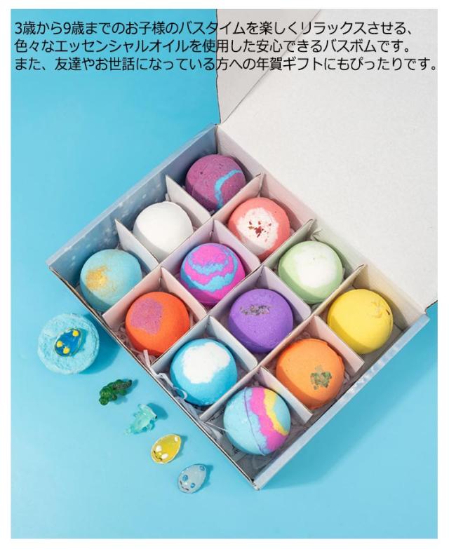 | 12個セット フィギュア内蔵! BOX付き こどもバスボムの中には、動物おもちゃが入っています*赤ちゃんが誤飲することを防ぐため、入浴時は必ず大人が付き添ってください。バスボムが泡立つと、かわいい動物のおもちゃが徐々に現れます。 お子様にお風呂の楽しさを体験してもらうためのものです。お子様がバスタイムを楽しめるように、甘いやさしさに包まれるバスボールをお試しください! 安全・天然のバスボールは、人工香料や色素を含まず、オーガニックシアバターと精油で作られたバスボールです。 誕生日、クリスマス、成人式、こどもの日、パーティーなどのイベントにぴったりな、男女どちらにも喜ばれるホリデーギフトセットです。バスボムセットに最適で、クリスマスプレゼント、お土産、サプライズボックス、女の子向けおもちゃ、幼児用バスなどにもぴったりです。 3歳から9歳までのお子様のバスタイムを楽しくリラックスさせる、色々なエッセンシャルオイルを使用した安心できるバスボムです。また、友達やお世話になっている方への年賀ギフトにもぴったりです。 | |