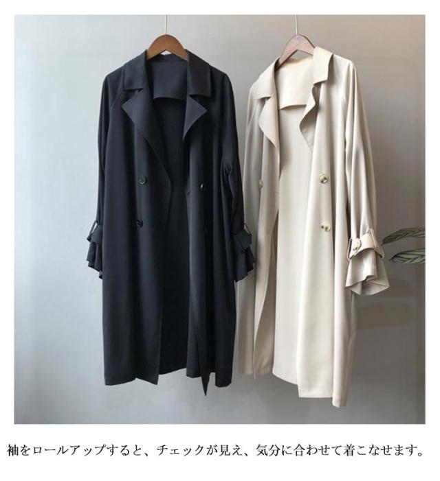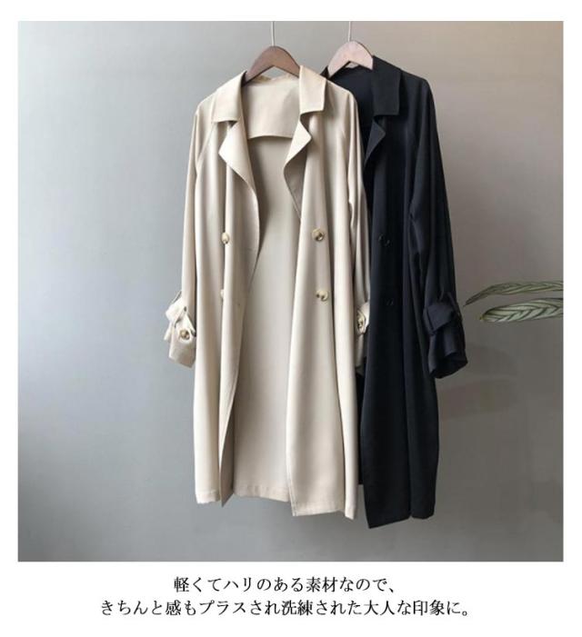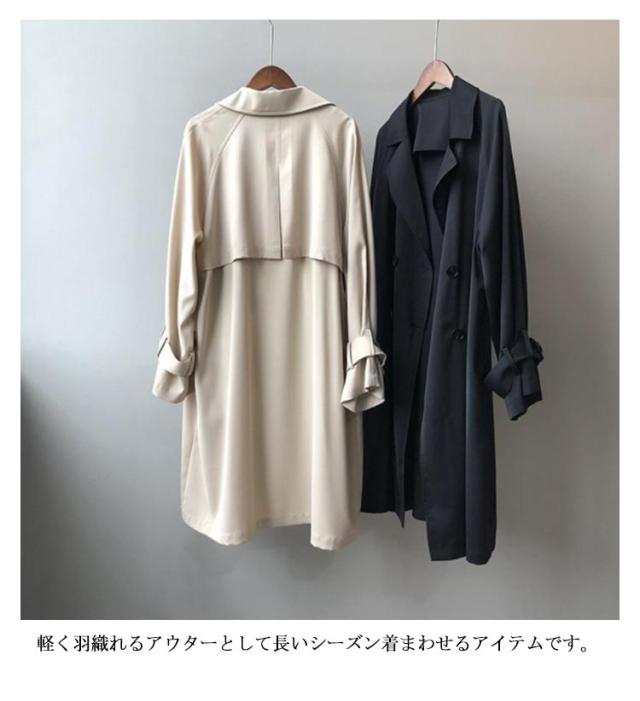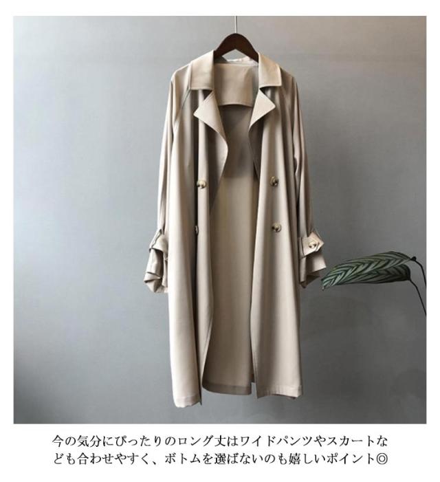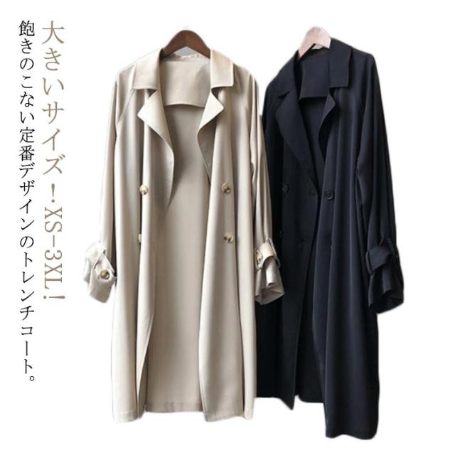 | 大きいサイズ!XS-3XL!飽きのこない定番デザインのトレンチコート。 軽くてハリのある素材なので、きちんと感もプラスされ洗練された大人な印象に。 袖をロールアップすると、チェックが見え、気分に合わせて着こなせます。 今の気分にぴったりのロング丈はワイドパンツやスカートなども合わせやすく、ボトムを選ばないのも嬉しいポイント◎ 軽く羽織れるアウターとして長いシーズン着まわせるアイテムです。 | |