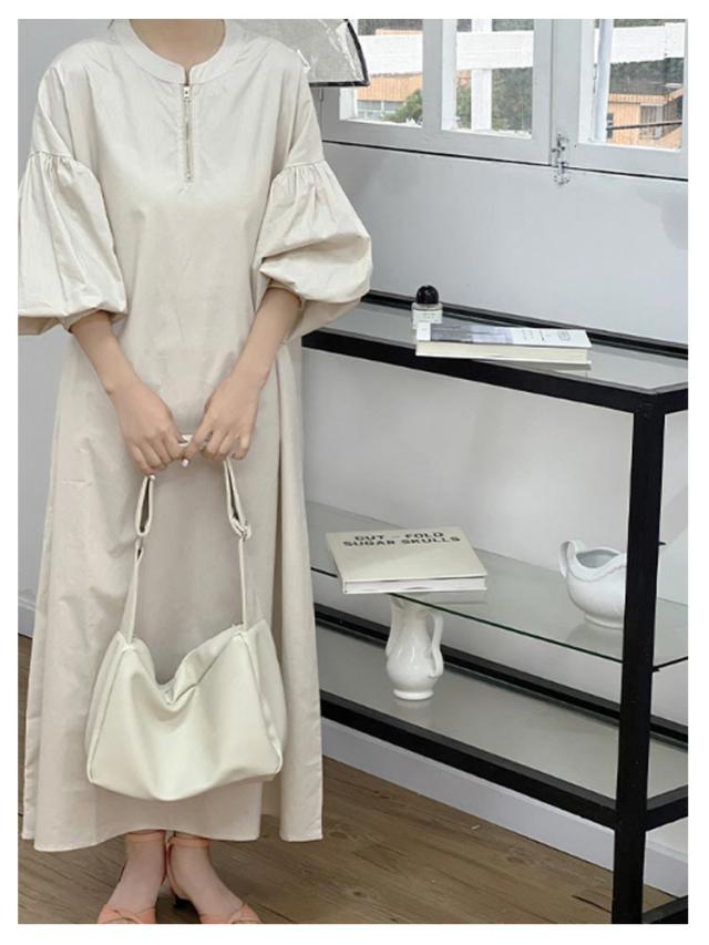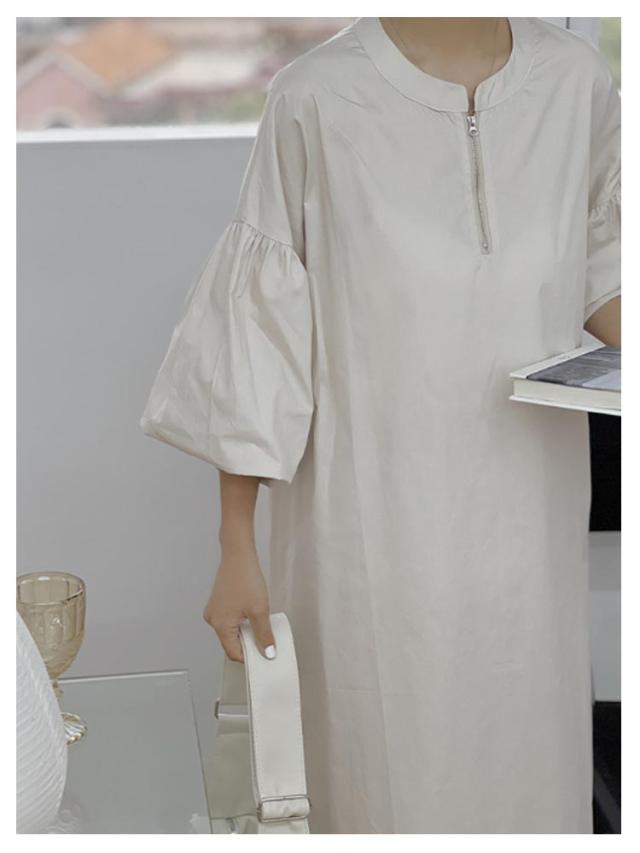 | 大人可愛いぼわん袖 ハーフジップワンピース 立体感のある袖が女性らしい抜け感を演出♪ 袖コンシャスなシルエットできれいめカジュアルに決まる♪ハリ感が上品な1枚◎ | |